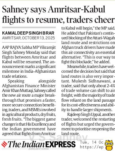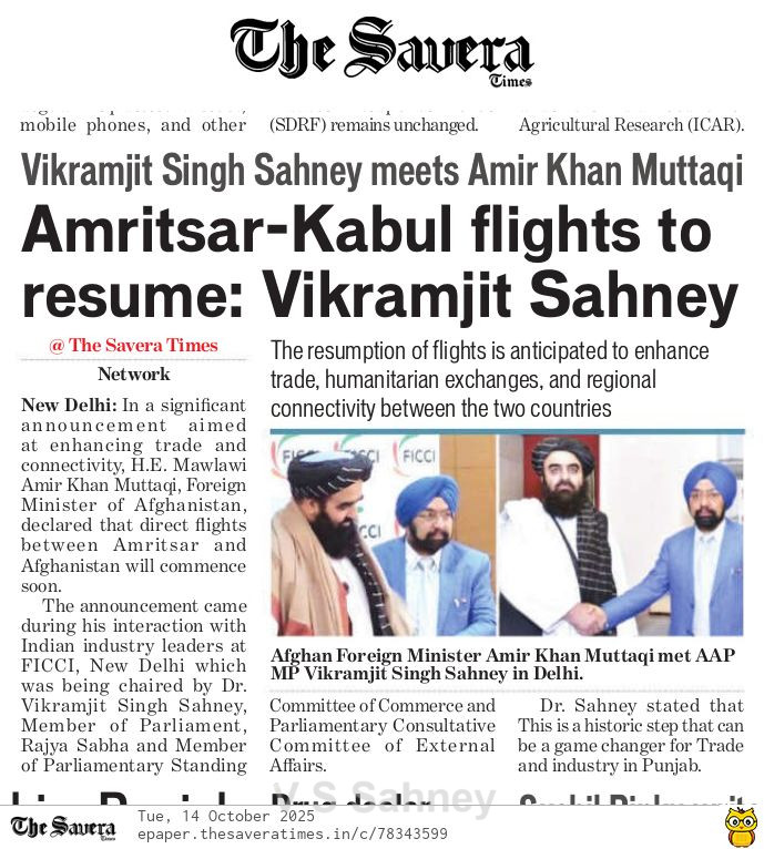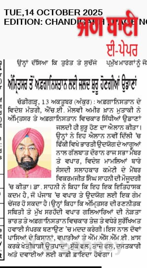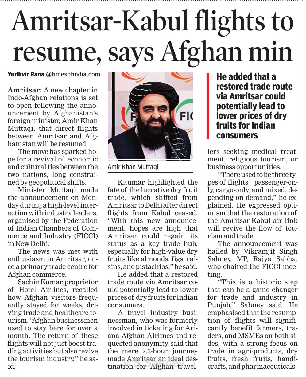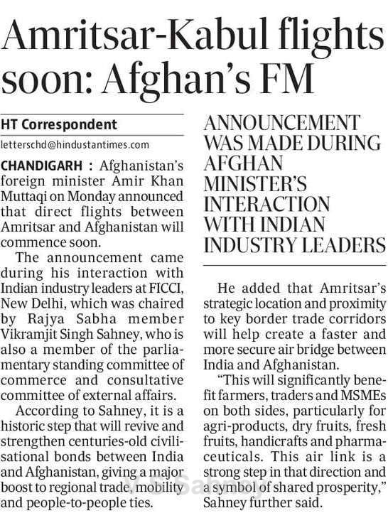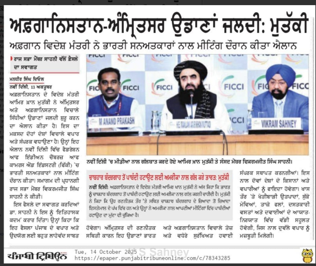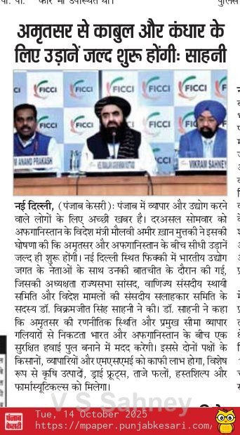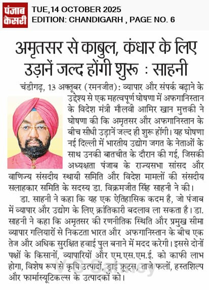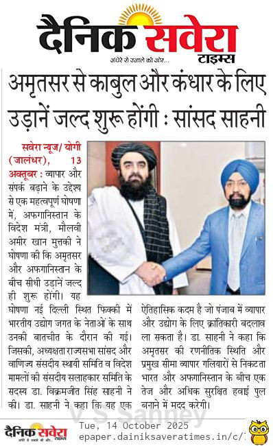 Amritsar to Kabul, Kandhar Flights to Start Soon MP Sahney Posted On October 15, 2025 Related Posts Set up Dr. Manmohan Singh School of Economics: MP Vikramjit Singh Sahney MP Vikram Sahney to take up issue of MEP on Basmati rice 27 JUNE 23 – Ranjit Singh MRST About The Author Vikramjit Singh Sahney
